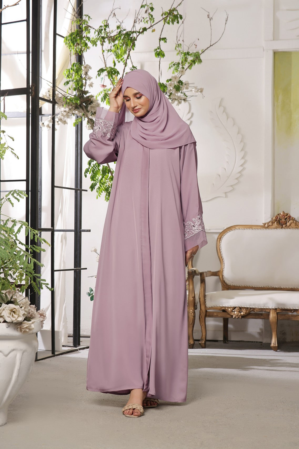Complete Look: Includes a matching hijab, providing a ready-to-wear outfit with effortless charm.