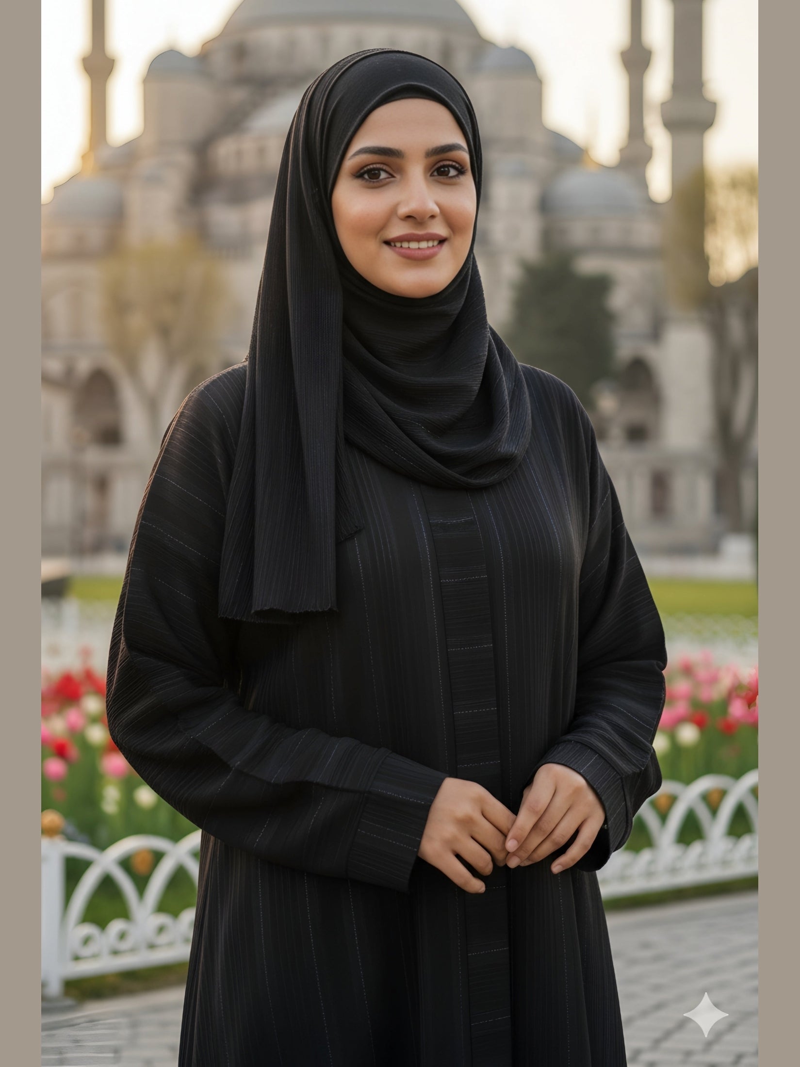 Elegant, versatile, and endlessly stylish — this Black Zari-Line Front-Open Abaya is a wardrobe essential for the modern modest woman.