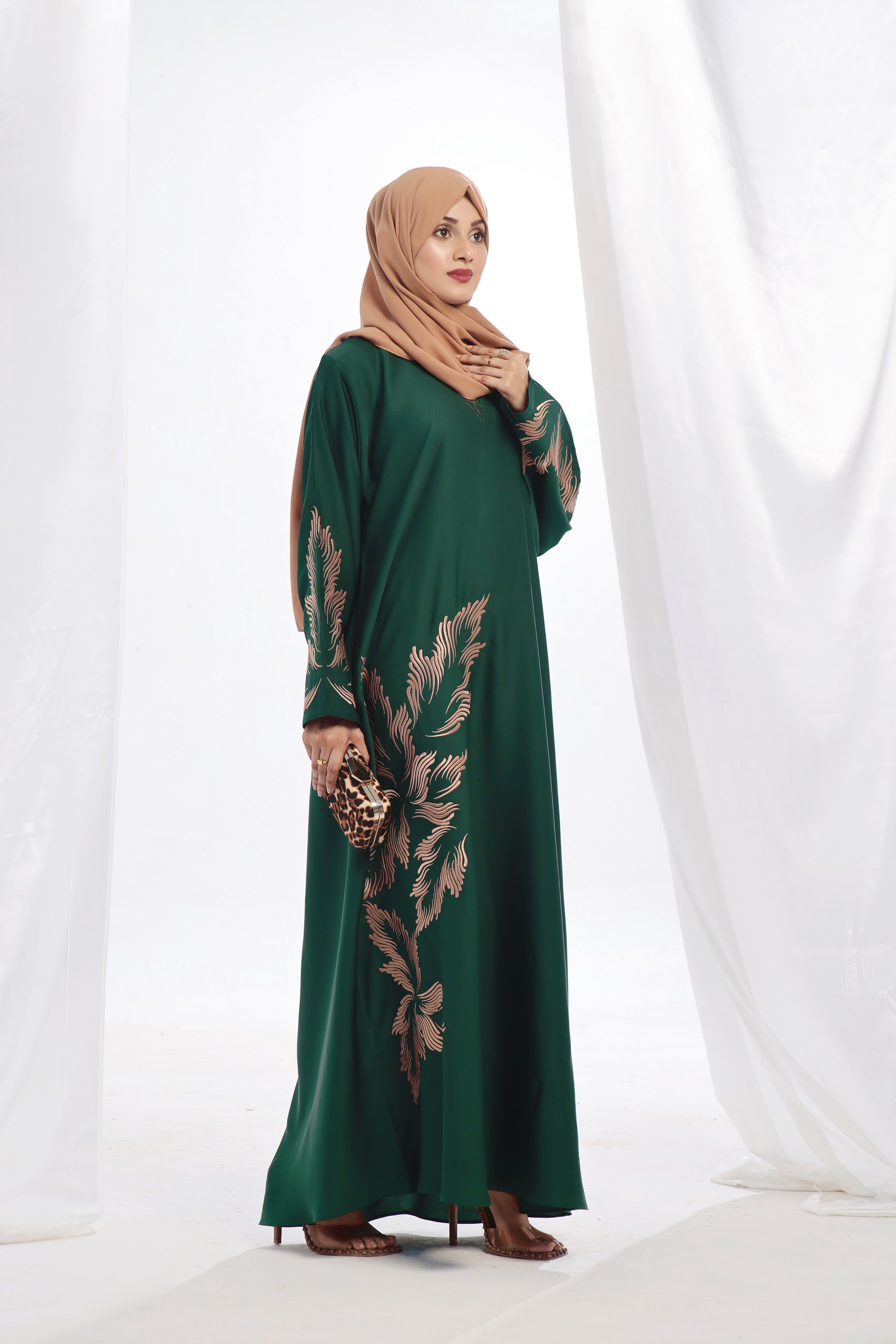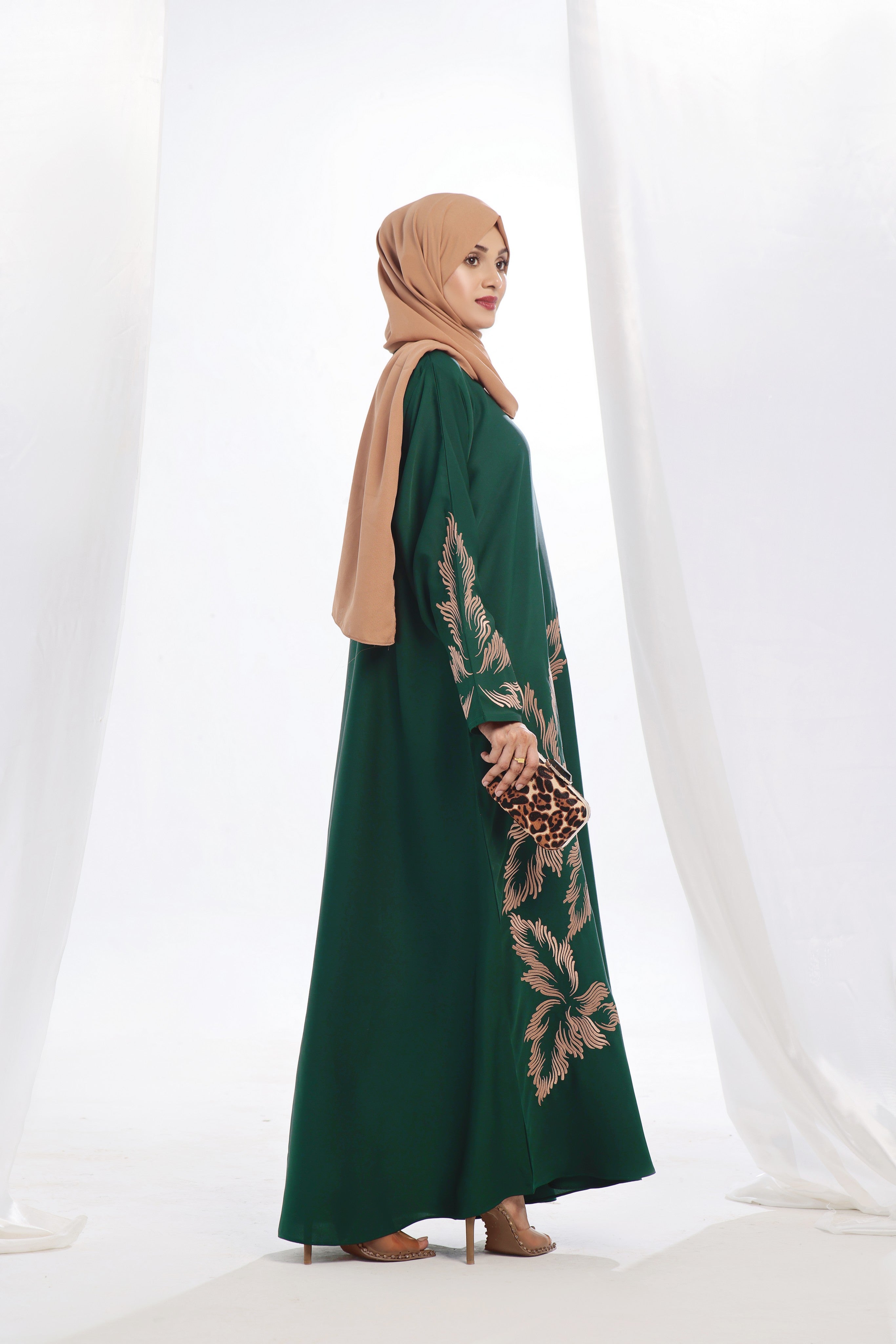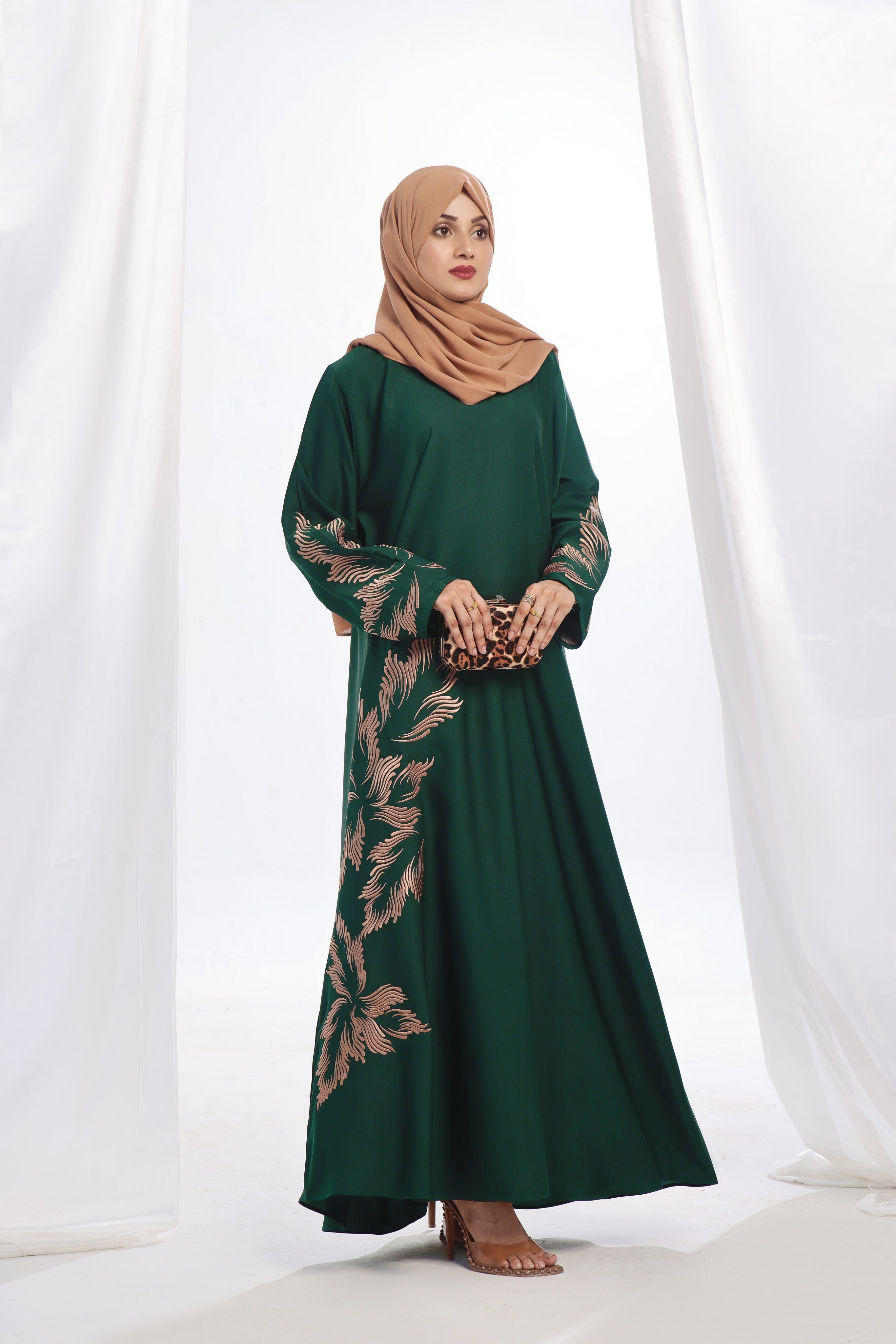 Green Color: A rich and elegant shade that enhances the regal appeal of this abaya.
