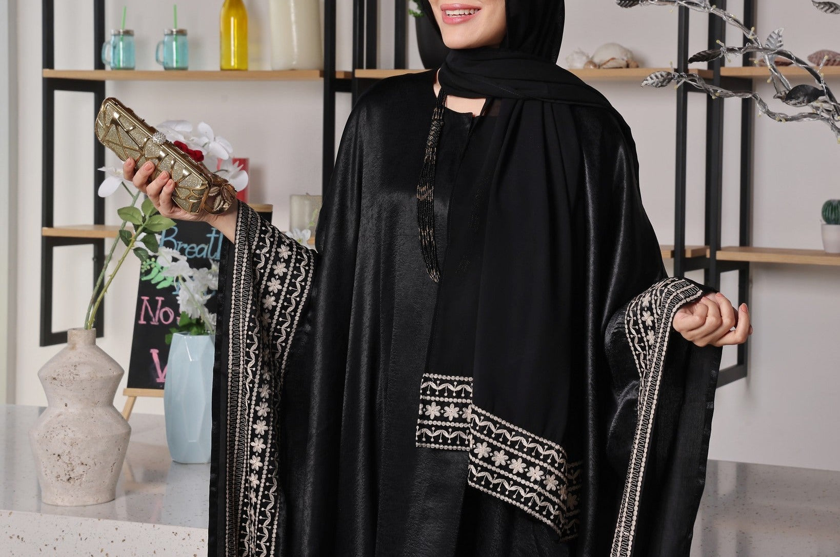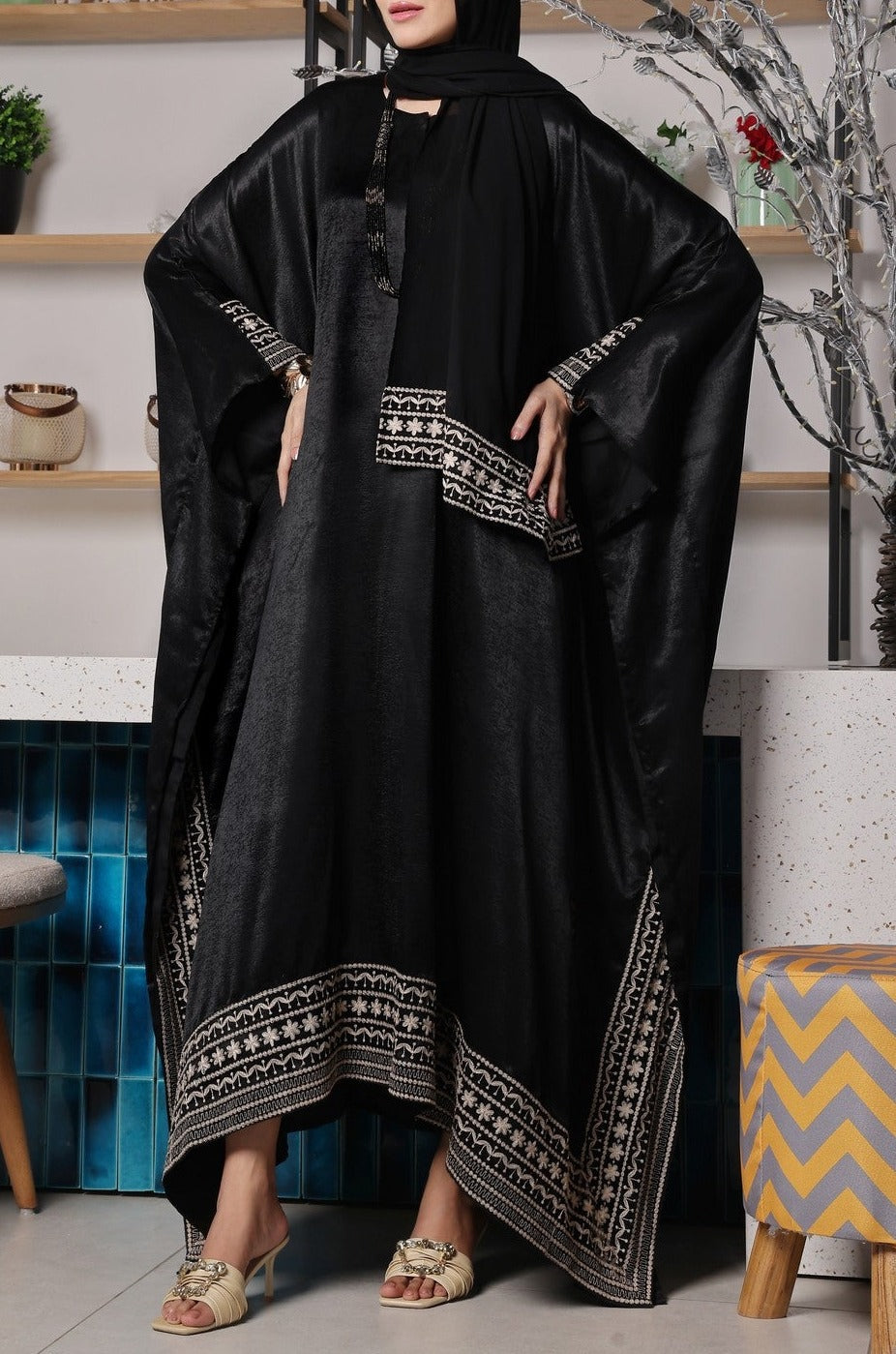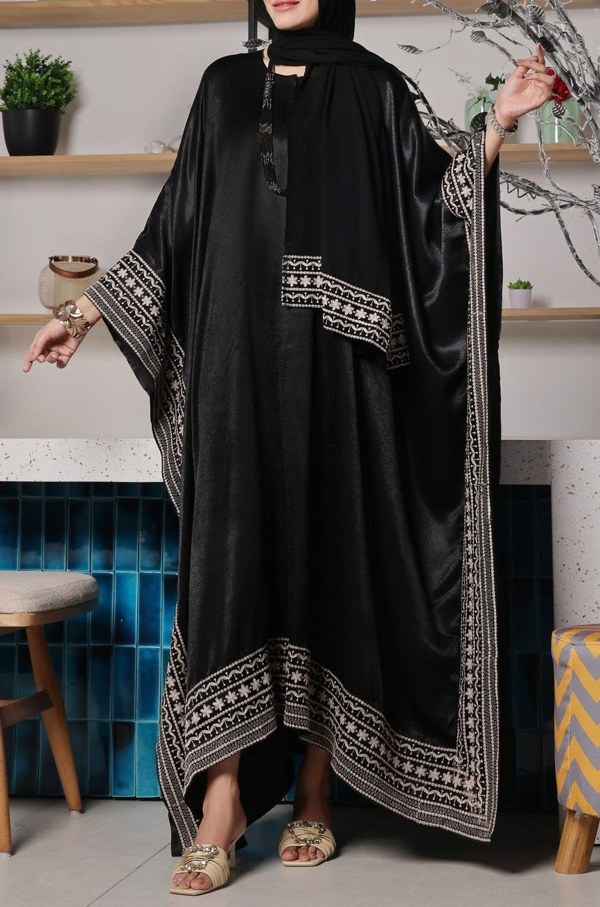 Our beautiful Kaaftan style abaya is best for all day everyday wear which is soft and breathable premium Dubai fabric with patch on front along with embroidery which is sober and elegant design which is best to carry and comes along with Chiffon Sheila