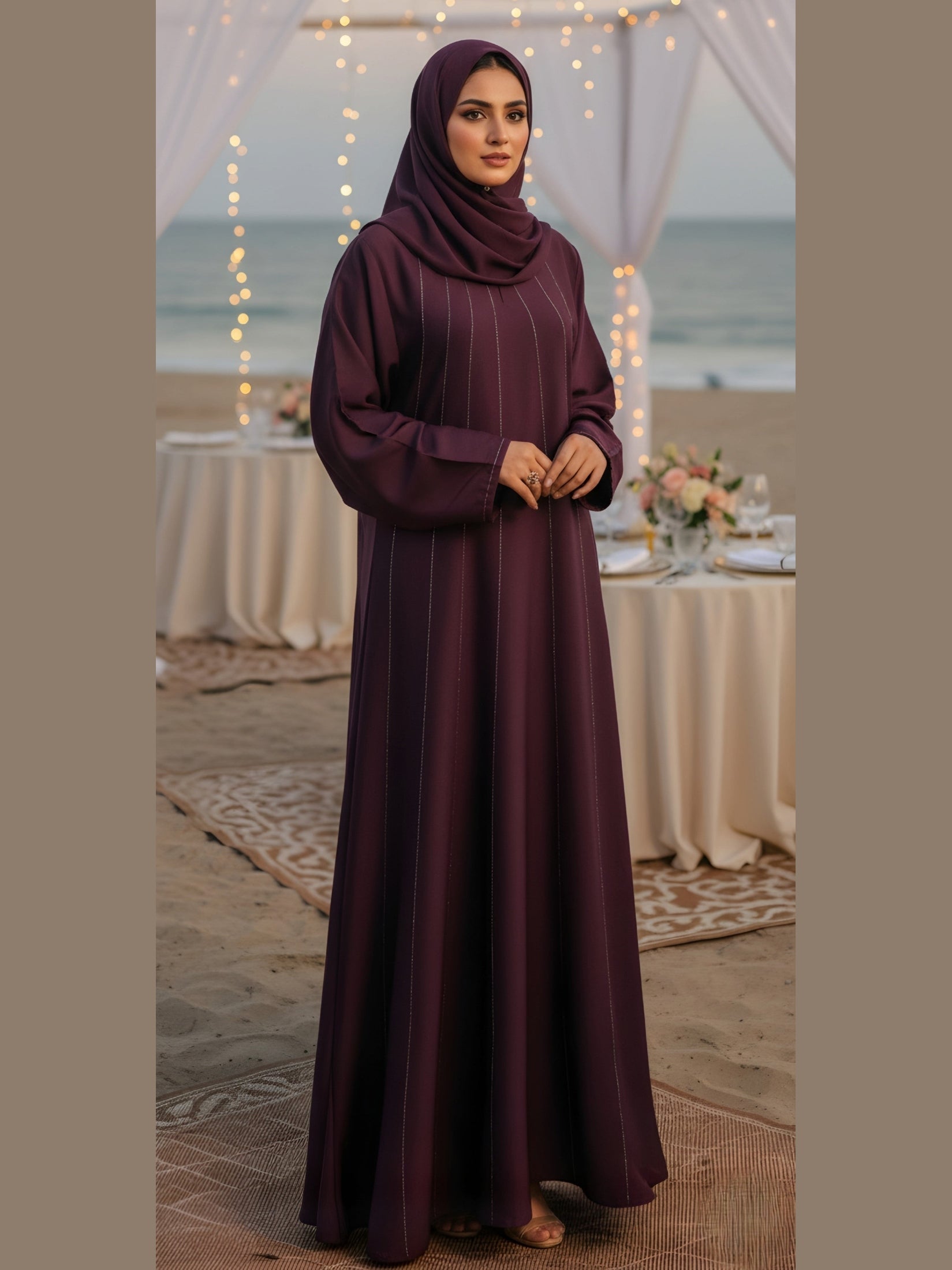 Where depth meets elegance — Mystic Maroon embodies timeless sophistication with its rich plum hue and fine vertical embellishments that elongate the silhouette with subtle sparkle. Crafted from premium Nidha fabric, it’s the perfect harmony of modern grace and classic charm.