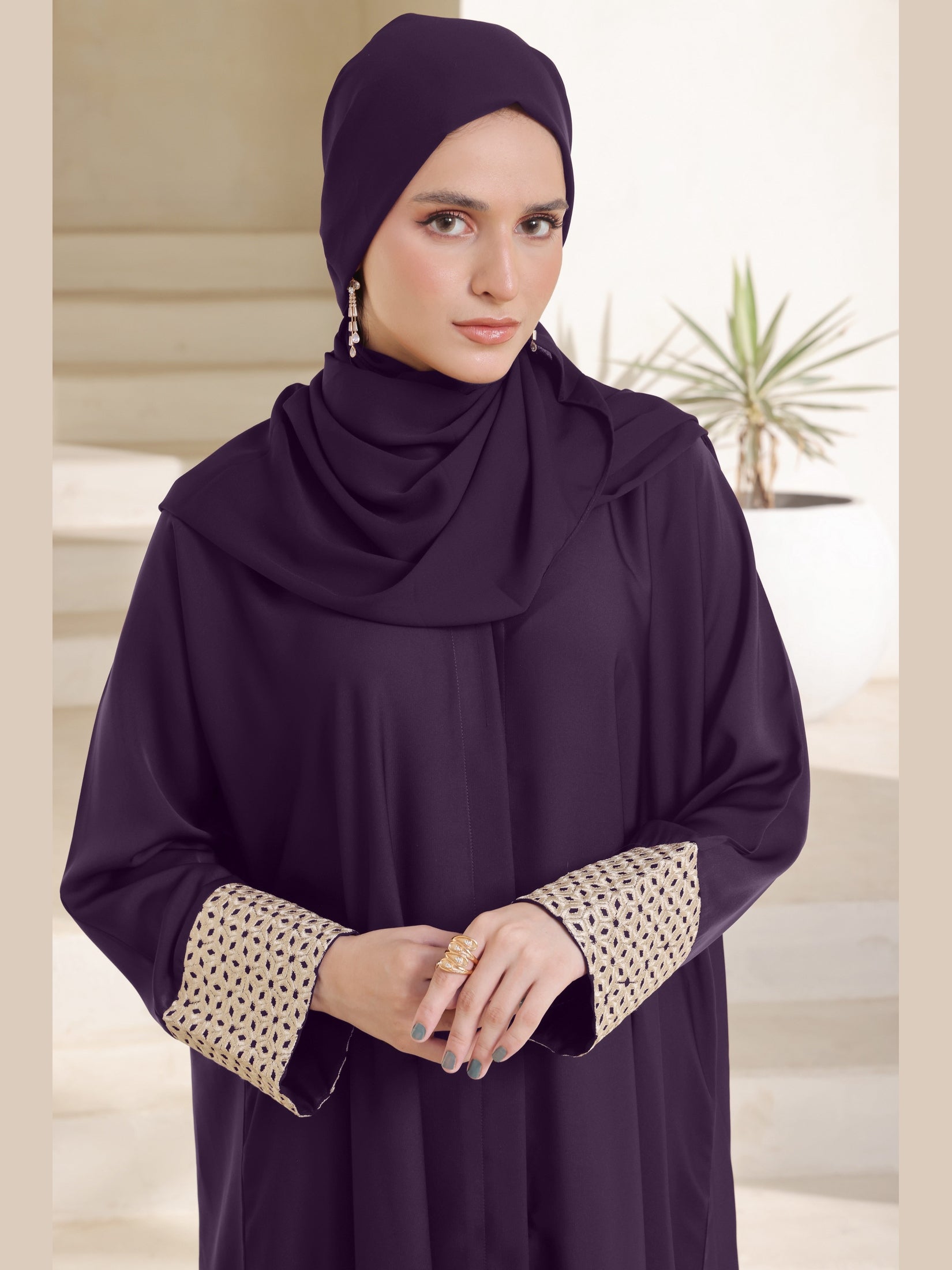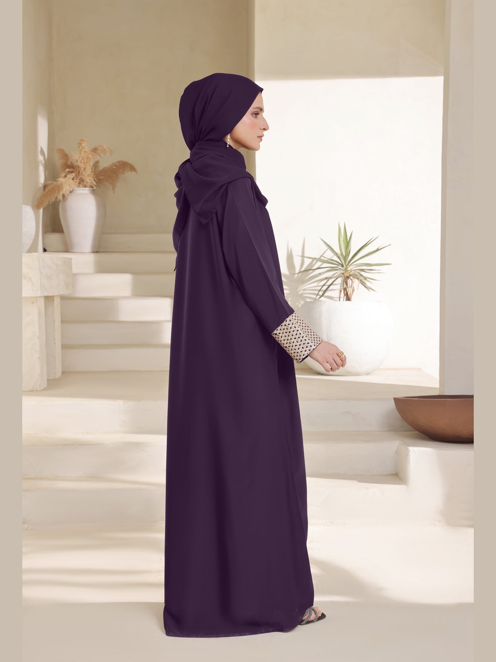 Rich, refined, and beautifully detailed — our Abaya is a timeless expression of grace. Designed in a deep brown hue, this front-open abaya features delicate embroidery on the sleeves and comes with a perfectly matching hijab, creating a seamless, elegant look.