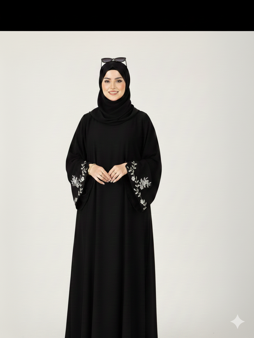 Black Nida Fabric Embroidery Premium Luxury Abaya