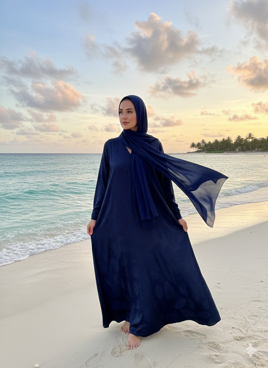 Premium Jacquard Fabric Self Printed Premium Abaya ( Navy Blue Color )
