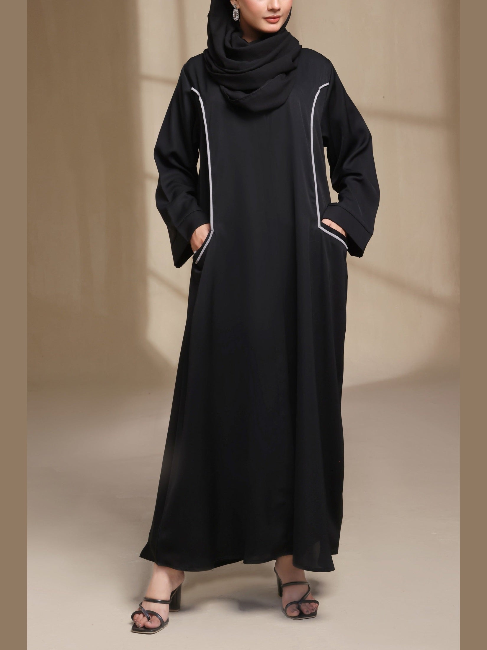 🖤 Matching Hijab Included – A matching hijab completes the ensemble with cohesive sophistication.